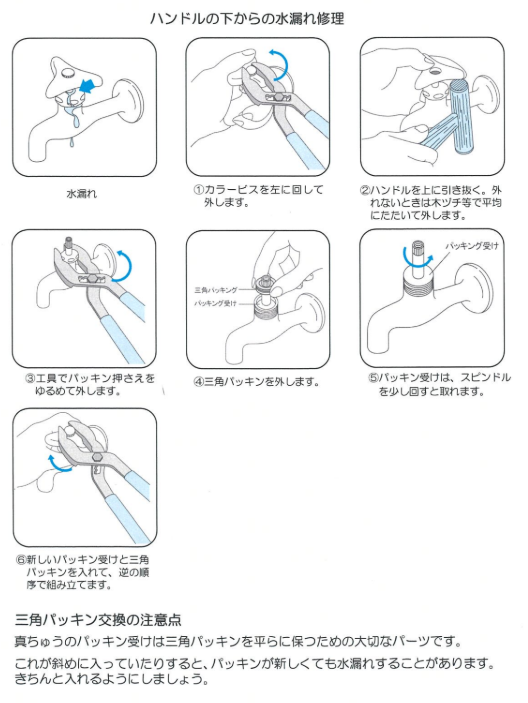 ここでは、蛇口の水漏れ・パッキン交換・修理費用・水道局への連絡など、
